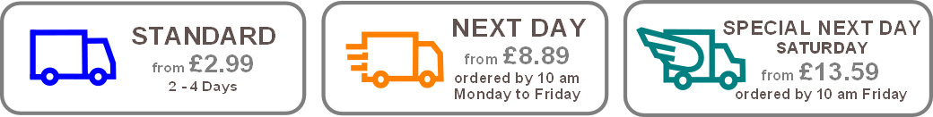 Next Day Delivery (order by 12 pm) Guaranteed by 1 pm Monday to Friday from £8.89.